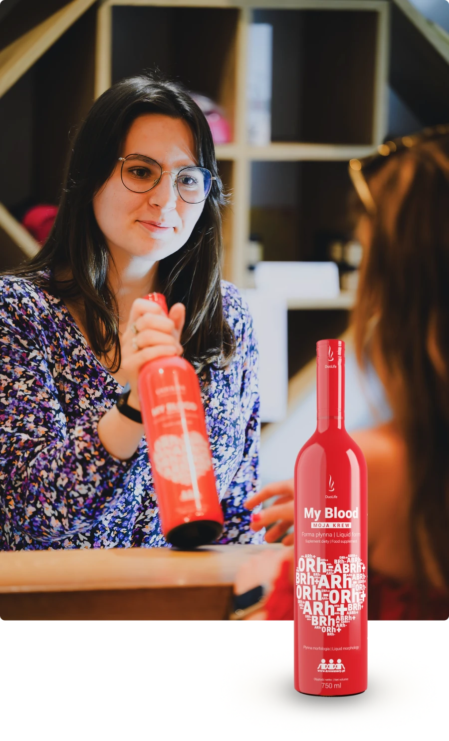 Sok z buraków ćwikłowych, sok z czarnej porzeczki, sok z czerwonego winogrona, ekstrakt z aceroli, ekstrakt z liści szpinaku; witaminy: A, D, E, C, B1, B2, B3, B6, B9, B12, B7, B5; składniki mineralne: żelazo, cynk, miedź, mangan, selen, molibden, jod.
